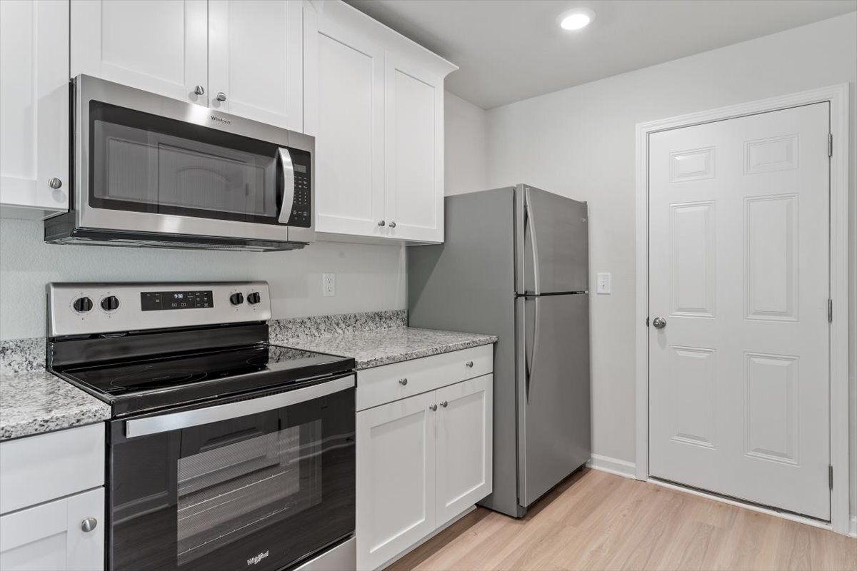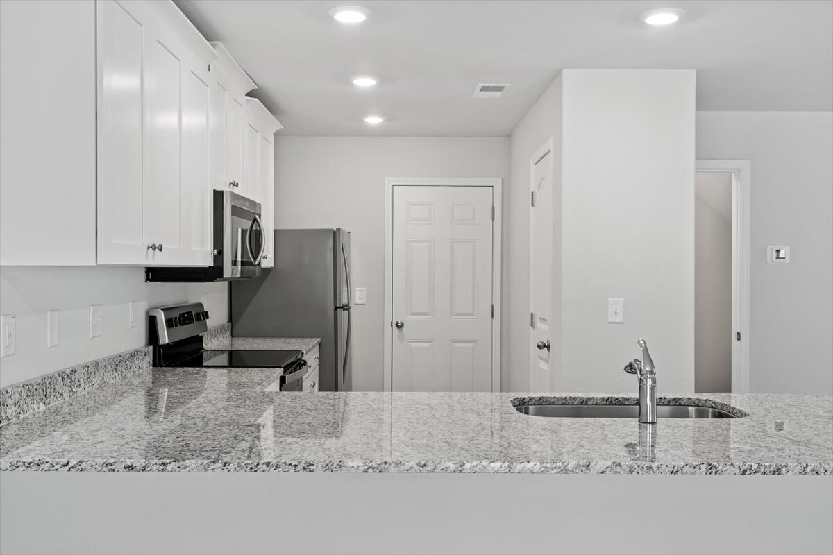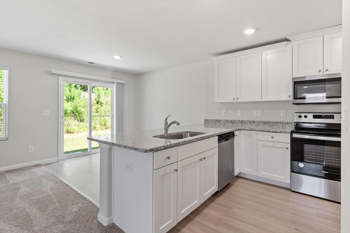 Welcome to this like-new 3-bedroom, 2.5-bathroom home with a 2-car garage in a desirable, vibrant, and well-maintained community! You'll be greeted by an abundance of natural light and a thoughtfully designed open floor plan that provides both comfort and functionality for everyday living and entertaining. The main level features luxury vinyl plank flooring that adds warmth and durability, complemented by granite countertops throughout the home for a polished, upscale look. The spacious living room offers plenty of space to relax and flows seamlessly into the kitchen and dining area looking to the backyard, creating a central hub perfect for hosting gatherings. The kitchen is a showstopper, boasting white 42-inch cabinets, stainless steel appliances, and generous counter space—ideal for both meal prep and casual dining. Upstairs, retreat to the primary suite with a vaulted ceiling, your private haven featuring walk-in closets and a luxurious en-suite bathroom with a separate shower. Two additional bedrooms share a well-appointed full bathroom, offering flexibility for family, guests, or a home office setup. Outside, you'll find the backyard, providing plenty of room for outdoor dining, play, gardening, or simply enjoying your own private retreat. Residents of this community enjoy access to fantastic amenities, including a playground, picnic area with grill, and a dog park, making it ideal for families and pet lovers alike. The location offers easy access to nearby destinations—just minutes from Downtown Angier, Fuquay-Varina, Lillington, and Campbell University—giving you the best of small-town charm with close proximity to shopping, dining, and schools. Don't miss the opportunity to own this beautifully maintained home that combines modern finishes, thoughtful design, and a convenient location. Schedule your showing today! The seller has never occupied the home.